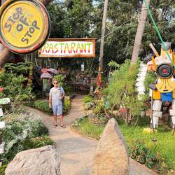 Stick Fisherman were done for the day by the time we cruised through (but we got a pic driving by of all their sticks), and ChatGPT steered us wrong by saying that Parrot Island was after Coconut Tree Hill, so we zoomed right passed it at 40kpm without even realizing it. But once we did … we were so hot, sticky and ready to be at our hotel… we will decided to mark that as a miss.