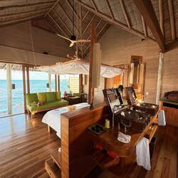 From there it was back to villa to get ready for a documentary on the Maldives Reefs and dinner. They filmed it here on a local diver/researcher named CoCo about the reefs and the research being conducted here at Six Senses: