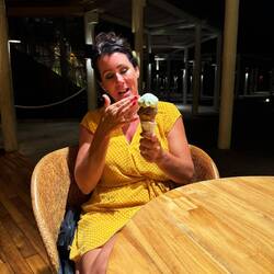 From here … back to the Chill Bar for a chill dinner and another ice cream. 🫣 Fruit of the God and Mint chocolate chip for us both.
