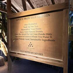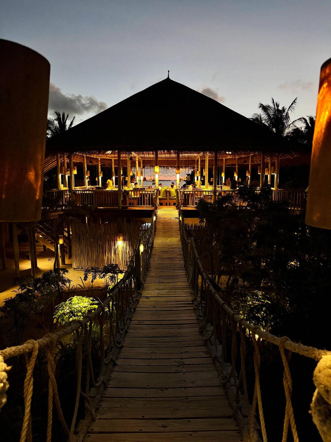 Now for dinner … Six Sense is all about sustainability and Leaf (that’s the name of the restaurant) is a visual representation of that, with the gardens surrounding the place full of future nutrients and some words of advice for guests. Let’s also note the quaint rope bridge that brings you the entrance.