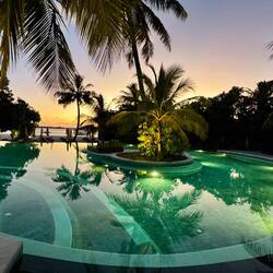 At 6:30pm, there was another educational/ informational presentation so Mike and I geeked out on sea grass before dinner. Super interesting and shocking to hear that many resorts are actually killing or removing sea grass to provide the instagram “worthy” clear turquoise water that tourist seek. The impact isn’t just effecting the ecosystem and all that depends on the sea grass but sea grass converts more CO2 to O2 more than the rainforests! WHO knew?!?!? We sure didn’t. Six Senses resorts are top of educating other resorts that actually the sea grass is home to many different species and, for tourism, it’s actually better to keep the sea grass for better snorkeling experiences. Pass the word! Save the sea grass! 🌊🌱