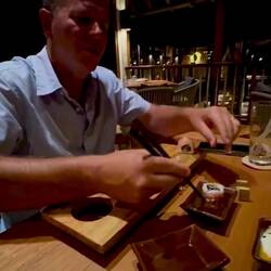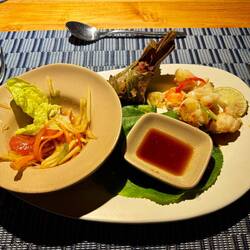 Evening agenda … Thai! Set menu for the evening in the Longitude (restaurant) was Thai so we most definitely signed up for this. We don’t like to wish time away but we were a wee bit excited for 7:30pm. A shower to wash off the salt and spiff up for the night (lots of showers on this trip with all the marine biology work we are doing) … then as two eager beavers we biked to Thai with grumblies in our tumblies.
