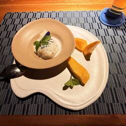 Dinner was at Zen … originally we were going to skip Zen but the menu looked inviting so we went for it. The dessert was out of this world! Some delicious white chocolate apple with cream and apple filling inside. To die for!!!