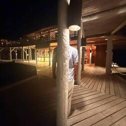All oiled up and back to villa for packing and a last swim. Just as we were all packed, in our suits for a dip … downpour again. We looked at each other and Mike decided … cannon ball! Swimming in the Maldives in a downpour with the underwater locals was amazing!!!!! Our neighbor to the left of us, came out on the lanai to see what the commotion was about. I wanted to say … “Come on in!” But I don’t like many strangers so I didn’t. Kept this moment to us.