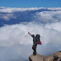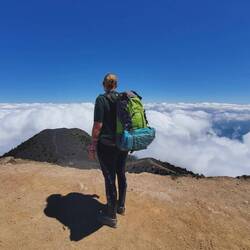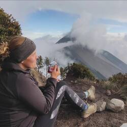 Und nun sprechen wir doch genau über diesen Hike. Der Acatenango ist 3'965 Meter hoch. Man hat die perfekte Sicht auf den Fuego - ein aktiver Vulkan. Die Einheimischen wollen, dass alle Touren buchen. So gibt es nicht wirklich einen Buss der vor 11 Uhr zum Start fährt und Zelte in Antigua zu mieten ist beinahe unmöglich. Zum Glück habe ich eines. Ein Rucksack für mich und ein Schlafsack für Armin war dafür einfach. Wir bestellten ein Uber welcher uns am morgen zum Startpunkt fuhr. Der war leider dan sehr teuer. Vom Startpunkt zum Gipfel sind es 6.7 Km und 1'663 Höhenmeter. Die ganze Wanderung ist eigentlich einfach - nur sehr steil. Der Anfang war dan noch so lockeres Gestein, so das mann immer wieder Einsinkte. Wie Tiefschnee - nur mit vielen unangenehmen Steinen im Schuh. Anschliessend war es nur noch Steil. Wir Übernachteten auf 3'700 Meter über Meer auf einem Vorsprung als Campingplatz. Dort konnten wir den Vulkan Fuego fantastisch bestauenen. Ich wurde das erste Mal in meinem Leben Höhenkrank. Hatte übel Kopfschmerzen und erbrach die ganze Nacht. Zum Glück waren noch 2 weitere Schweizer auf dieser Platform, welche mich mit Medis eindeckten. Mit sehr wenig schlaf und ich völlig in den Seilen hängend, räumten wir am nächsten Tag mein Zelt zusammen. Wir beschlossen trotz allem den Gipfel zu erklimmen. Dies war noch der schlimmste Teil von allem und ich gab mir mühe, nicht noch mehr Mageninhalt auf den Boden zu verteilen. Armin trug bereits mein Rucksack und ich zwang mich Schritt für Schritt hoch. Oben angekommen wurden wir von einer atemberaubender Aussicht und einem Wolkenmeer belohnt. Ich war erfüllt von Glück, Stolz und Überwältigt. Dann ging es zum Abstieg. Und alle die bis jetzt mit mir mitfiebern - der Aufstieg war richtig angenehm im Vergleich zum Abstieg. Es war steinig und steil. Am Besten wäre es zu rennen - ich brachte das irgendwie nicht hin und tapte mich runter. Am Ende waren meine Beine komplett durch und meine Füssen ein Meer aus Blasen. Als wir unten ankamen, teilte uns ein Polizist mit, das so jede Stunde einmal ein Bus kommt. Ich komplett am Ende meines Energiehaushaltes. Ein Auto mit einer leeren Ladefläche bog um die Ecke und ich zögerte nur 2 Sekunden bevor ich mein Daumen zum Autostop raushilt. Der Fahrer hilt an, ich teilte ihm mit wo wir hin möchten und er versicherte mir, das von seinem Dorf viele Buse nach Antigua fahren. Wir hüpften hinten auf die Ladefläche - Armin noch kaum realisierend was in diesen Moment gerade passiert ist. Im Dorf angekommen machten wir uns auf Bus suche, als ein Auto anhielt und uns anbot uns mitzunehmen. Wir stiegen auf die zweite Ladefläche und er nam uns bis einem Dorf vor Antigua mit. Dort namen wir noch den Chickenbus bis nach Antigua. Wir gönnten uns eine Pizza und zurück im Hostel lies ich meine Kleider waschen - sie sind Dreckig wäre eine freundliche Ausdrucksweis. Zudem lernte noch 3 weitere Fahrradreisende kennen und Daniela aus Luzern schrieb mir, das sie die nächsten Tage nach Antigua reist. So verlängerte ich meinen Aufenthalt um 2 weitere Nächte und freute mich riesig Daniela zu sehen. Wir schlenderten durch die Gassen und gingen zusammen essen. Und vielleicht - aber nur vielleicht war zwischen den Tagen vom Hike und der Ankunft von Daniela noch ein Abend vorhanden, an dem alles ein kleines Bischen eskaliert ist. Ich gehe nicht genauer darauf ein.