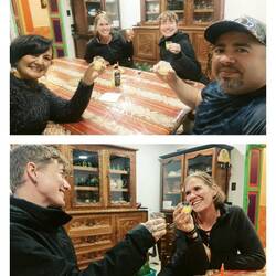 Nach weitern Schlammschlachten und Höhenmeter erreichten wir schlussendlich das Visitor Center. Ab da ging es vorallem runter. Bei der ersten Ortschaft steuerten wir ein Kaffee an und ich gönnte mir einen Geburi-Donat und anrufe nach Hause. Weiter gings nach Mira (was auf Spanish - schau / guck - heisst). Mira heisst mira, weil man von Mira einen schönen Ausblick hat. Mira! Wir steuerten ein Hostel an, waren die einzigen Gäste und Emma erzählte in den ersten Minuten das ich heute Geburtstag habe. Somit kammen die Gastgeber einfach mit uns Essen und als wir zurück waren gabs ein Cheescake mit Kerze, singen und einen Manderinen Schnapps. Wir sprachen Tost's aus und leerten eine Flasche. Dan kammen weitere Freunde mit einer weiteren Flasche Maraguya Schnapps. Wir leerten schlussendlich beide und Emma und ich schwankten um 2.00 Uhr morgens ins Bett.
