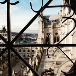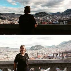Die grosse Kirche mitten in Quito kann man nicht nur von aussen betrachten, sondern die etlichen Stuffen in Kauf nehmen und einen grossartigen Ausblick geniessen. Der war wirklich grossartig... doch wer mich kennt weiss... meine Hände beginnen zu schlottern und meine Knien werden weich. Je Höher wir gingen desto mehr kam ich an meine Grenze. Man konnte sogar unter dem Dach von den beiden Glockentürme zu dem anderen Turm schlendern. Spätestens bei dieser steilen, durchsichtigen Treppe blieb mir die Luft weg. Ich passte und wartete schön brav bis Yousef und Emma wieder runter kamen. Ich mag den Kampf mit mir selber nicht. Ich wäre gerne Schwindelfrei und würde am liebsten über ein Seil zwischen zwei Gipfeln balancieren... aber glaube das ist etwas das man sich nicht aussuchen kann. Früher habe ich noch oft versucht meine Höhenangst zu überwinden... wer es aber kennt weis, das es ein grosser Kampf ist und irgendwann habe ich diese Angst einfach auch ein bisschen respektiert.