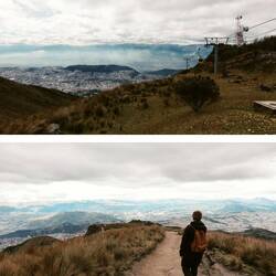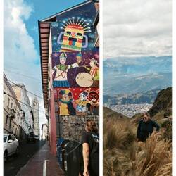 Wir radelten erneut dem Tembr entlang. Eine alte Zugschiene die Grösstenteil zu einem Schotterweg oder teilweise sogar zu einer Strasse umgebaut wurde. Das gute - Züge können keine massive Steigung erklimmen. Somit ging viel in einer angenehmen Neigung runter. Wir erreichten Willson. Willson begrüsst seit 30 Jahren reisende bei sich zuhause. Er hat ein schönes Haus und wir durften unsere Zelte im Garten aufstellen. Seine Forderung stellt er aber schnell fest... er mag es wen die Reisende kochen. Da wir uns ja sowieso verlpflegen müssen, war das für uns nicht so eine Sachen. Oft biete ich den Leuten die uns Unterschlupf gewähren sowieso an zu kochen. Wir fuhren in den nächsten Laden, dekten uns mit Gemüse und Pasta ein und kochten. Willson ist auch ziemmlich direkt mit der Forderung wer da jetzt Abwäscht usw. Hier gerne vermerkt, ich versuche immer alles zu erledigen... man muss mich nicht auffordern abzuwaschen... für mich ist das selbstverständlich. Es ist nicht die Gastfreundschaft die wir gewohnt sind und er begrüsst die Reisenden wohl auch gerne damit er versorgt ist. Das ist ja soweit in Ordnung. Wir durften unsere Fahrräder zwei Nächte bei ihm einstellen und fuhren mit dem Bus nach Quito. Yousef und Emma buchten sich ein Hotel und ich ein Hostelbett. Das Hostel war cool und man hatte einen schönen Ausblick über die Stadt. Ich stellte mich auf 2 Tage Sightseeing ein und hatte keine Ahnung, das ich jeden Tag an meine Grenze komme werde...
