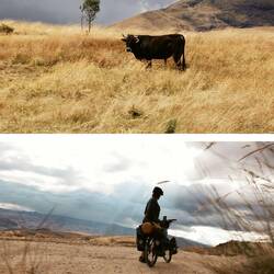 Am nächsten Tag ging es weiter nach Huaraz (die Franzosen radeln von Süden nach Norden). Die Strasse sehr befahren. Der Verkehr schlimm. Sie nahmen null rücksicht und ich hielt 2-3 mal den Atem an, weil die Fahrzeuge so nah und schnell neben mir vorbei fuhren. Ich beschloss es mit Autostopp zu versuchen und der erste Jeep der vorbeifuhr, nam mich mit. Zwei Bauarbeiter die ein Dorf vor Huaraz anfuhren. Ich nam dankbar an und lud mein Fahrrad auf. Den Endspurt wollte ich noch radeln. Bei einer Baustelle sah ich in der gegenüber stehenden Autoschlange ein Defender Fahrzeug. Dachte mir so: cool wahrscheindlich auch Reisende. Als ich näherkam erkennte ich das Soloturner Autoschild. Ich winkte und die beiden fuhren aus der Schlange, hilten am Strassenrand und boten mir ein Kaffee an. Wir schwatzten gut für eine Stunde. Serafina und Michel sind in Patagonia gestartet und fahren richtung Alaska. Die Beiden waren echt super. Wir tauschten Insta und wer weis - evtl. werden wir uns ja in der Schweiz wieder sehen. Würde mich auf jedenfall freuen. Zudem erzählten sie mir von einem Schweizer Restaurant in Huaraz. Ich radelte die letzten 30 Min und bezog ein Bett im Hostel El Tambo. Das Hostel ist bekannt unter Radreisende und wir waren ca. 5 Radreisende. Mich lies der Gedanke an das Fondue nicht los und ich steuerte das Schweizer Restaurant an. Ich studierte die Karte und die Preise waren so gar nicht tauglich für mein Budget. Aber ich lies mich trotzden für ein Fondue hinreisen. Immerhin ist mein letztes nun doch über 15 Monate her. Der Besitzer kam aus der Küche und fing an mit mir zu sprechen. Ein Schweizer natürlich. Ich erzählte ihm von meinem Projekt und er und sein Angestellter waren super begeistert. Zum Desert gab es ein Stück Büdnernusstorte und ein Kaffe Luz. Als ich bezahlen wollte wurde mir eröffnet das die Tintenpatrone für die Rechnung wol leer sei und das ich gerne eingeladen bin. Neben dem Tränchen das ich beim Fondue vergoss, kam wohl nochmals eines hoch. Ich war super dankbar und glücklich. Und als ich zurück im Hostel ankam war eine Gruppe in der Küche und ich wurde eingeladen zum Pisco Sour (Peruanisches Alkoholgetränk - echt gut, halt nur mit rohen Eiern...) die Truppe war lustig und wir lachten viel. In solchen Momenten ist mein Herz so erfüllt von Glück, Dankbarkeit und Zufriedenheit und ich frage mich oft... wie habe ich so viel Glück verdient.