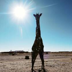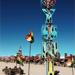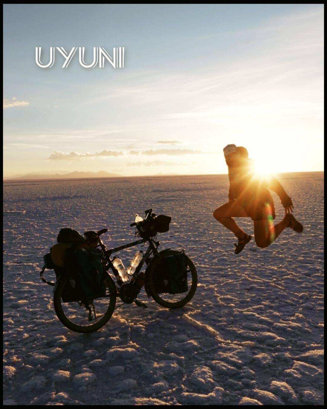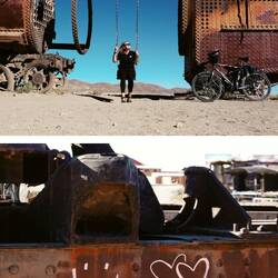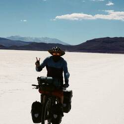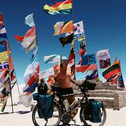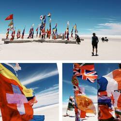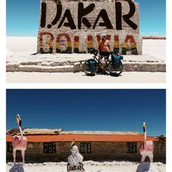 Auch die Flaggen und das Dakar Denkmal haben wir natürlich nicht ausgelassen und nach 150km radeln auf der Salzwüste Uyuni verliessen wir das Salzige Terrain und fuhren die letzten Kilometer nach Uyuni. Uyuni ist ein Touristenhotspot und ein Treffpubkt aller möglichen Reisenden. Aus 2 Nächten wurden 4. Jeden Abend waren wir eine grosse Gruppe Reisende, die sich irgendwo zum Abendessen traffen. Zudem besuchte ich den Zugfriedhof und verbrachte viele Stunden damit, das Salz aus Zelt, Mätteli, Taschen und Fahrrad zu entfernen. Gut, die letzte Nacht in Uyuni war nicht ganz Freiwillig sondern mehr dem Bus geschuldet, der am Vortag aufgrund Benzinmangel ausstieg. Ich nam von Uyuni bis Villazon einen Bus, da ich für mein Ziel die Reise bis ende Januar zu absolvieren, sowieso einen guten Teil skippen muss und der Bus nur 8 CHF (mit Fahrrad) kostete und mir so 4 Tage radeln einsparte. In Villazon gönnte ich mir nochmals ein günstiges Hotel in Bolivien.
