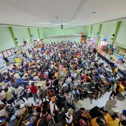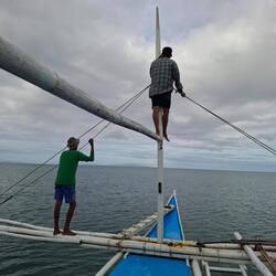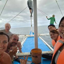 Nach dem langen Wartetag in Cebu ging es für uns dann 19 Uhr auf die Fähre, um über Nacht 13 h nach Masbate zu fahren. Die Betten waren wieder simpel, aber die Nacht auf offener See ging ganz gut rum. In Masbate mussten wir dann nochmal umsteigen in ein weiteres Boot nach Pilar und von da aus ging es final mit dem Tuktuk in den kleinen Küstenort Donsol. Wieder mal ein ganz schöner Ritt...