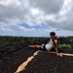 Also ging es zu Fuß los und es wurde eine richtig schöne Wanderung. Nachdem wir den Rand des Ortes erreicht hatten, ging es durch ein riesiges ausgetrocknetes Flussbett, vorbei an Palmenplantagen und über einen verlassenen Highway . Schließlich erreichten wir unser Ziel - das schwarze Lavafeld von einem der letzten Ausbrüche. Hier wächst noch nüscht... nur Geröll. Wir machten es uns auf den schwarzen Lavabrocken gemütlich, genossen die wunderschöne Landschaft und spähten immer wieder nach dem Vulkan, der sich zwischen den Wolken immer wieder hervor wagte. Komplett wolkenlos sah man ihn nur selten. Als eine Horde Touristen an unserem Platz ausgeschüttet wurde, traten wir den Heimweg an und genossen den letzten Abend in unserem schönen Resort.