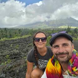 Da unser Julchen selbst hier von der bösen deutschen Grippewelle erwischt wurde, passierte die ersten 1,5 Tage nicht viel. Wir genossen das Resortleben mit Pool, Koiteich, Restaurant und Wiese. Doch das Beste war der direkte Blick auf den rauchenden Vulkan Marion..... ähhh Mayon natürlich 😜 Unser Runninggag der nächsten Tage....immer wenn wir nach dem Vulkan schauen gingen, fragten wir " Na, was machtn die Mutti /Schwiegermutti?"😜
