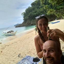 Wir fanden dann ein nettes Lokal direkt mit Meerblick und ließen dort unsere vergangenen 2 Monate auf den Philis revuepassieren. War eine tolle Zeit hier! Es vergingen kaum Tage, an denen wir nicht am, im oder auf dem Wasser waren.❤️ Tolle Strände, wunderschöne Natur, entspannte freundliche Leute, einfaches Reisen .... Einzig das Essen und die Angelflaute fanden wir nicht so pralle.