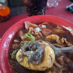 Auf dem Rückweg gab es dann noch lecker Food. Marci wieder sehr experimentell unterwegs mit Suppe aus Innereien, angebrütetem Ei und fettigen Fleisch. Mir drehte sich schon beim Anblick der Magen um.