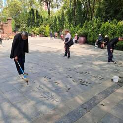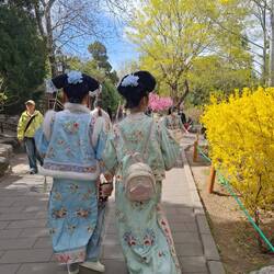 Am Samstag schliefen wir erstmal aus. Heute wollten wir zur Großen Wildgans Pagode. Oder wie Celli sagt " Schwanenhals-Pädagoge". Wir schlenderten die 3 km hin, aßen unterwegs auf einem Foodmarket was Leckeres und erkundeten dann in aller Ruhe das Gelände rund um die Pagode und den Dacien-Tempel. War wirklich total sehenswert und getoppt wurde alles wieder durch die hübschen ChinesInnen, die überall in ihrer tollen Kleidung posierten. Dazu an jeder Ecke Kirschblüten und Judasbäume - die haben wir zum ersten Mal gesehen und waren begeistert! Begeistert hat uns auch der gefühlt fußballfeldgroße Springbrunnen. Abgefahren wie riesig hier einfach ALLES ist.