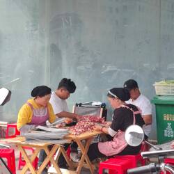 Im Anschluss besuchten wir noch das muslimische Viertel mit seinen Gassen und tausend Verkaufs- und Fressständen. Und spätestens hier merkten wir, dass das sicher kein normaler Freitag ist. Soooo viele Menschen! Das kann man sich nicht vorstellen. Und tatsächlich ist Feiertag - Qingming-Fest! Sowas ähnliches wie Totensonntag bei uns, glaub ich. Ein Glück sind wir nicht zur Armee gefahren - dort hätten sie uns heute ertrampelt!