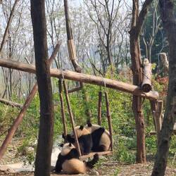 Das ganze Gelände ist wunderschön angelegt und einfach zu erkunden. Und so war es schon wenige Minuten nach Ankunft so weit und ich sah zum ersten Mal nen echten Pandi🐼 Musst ich gleich schon wieder heulen. Wie süß und tapsig sind die bitte?! Man konnte sich nicht satt sehen...und so ging es knapp 4,5 h weiter. Wir sahen sooooo viele Pandas. Alte gemütliche Pandas, mit über 20 Jahren, aber auch verspielte Jungtiere mit 6 Monaten. Wir konnten uns manchmal gar nicht von den Gehegen loseisen. Apropos Gehege: Wir waren froh zu sehen, dass die hier echt ein gutes Leben zu haben scheinen. Große, oft wild bepflanzte Areale und Kletter - und Rückzugsmöglichkeiten. Nicht so zooisch, wobei der Park trotz des reinen Zucht- und Auswilderungsgedankens natürlich absolut kommerzialisiert ist. Überall Panda-Merch und die ganze Anlage ist auf den Menschenandrang ausgelegt. Irgendwo muss ja die Kohle herkommen.