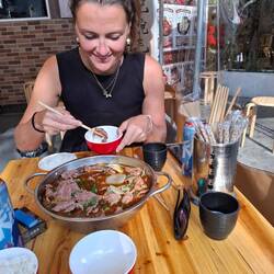 Am Sonntag freuten wir uns wieder richtig in unsere Frühstückskneipe zu gehen. War einfach zu gut da!🤤 Ansonsten passierte nicht mehr viel, außer bissl Besorgungskrams. Und einfach den letzten vollen Tag in China genießen....Bei scharfen Nudeln, Yak-Spieß und Bier ließen wir die Zeit hier nochmal revuepassieren. Auch wenn wir hier nicht alles super fanden und es anstrengend war, möchten wir die Erfahrung und die Erlebnisse nicht missen. China hat uns nochmal auf so vielen Ebenen eine neue Welt eröffnet, die wir so noch nicht kannten, uns nicht so vorgestellt hatten und wo wir nun froh sind, immerhin schon ein kleines Puzzleteil davon kennenlernt zu haben.Read more