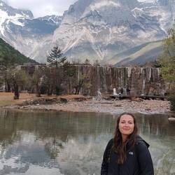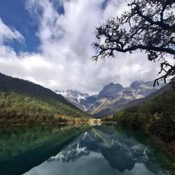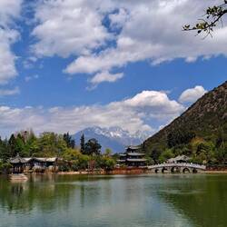Am Samstag gings früh hoch und in den Bus zum Jade Snow Mountain. Eben dahin wo der 5000er ist. Hier gibt es diverse Möglichkeiten mit Seilbahnen auf verschiedene Höhen zu fahren (auch auf 4,500m) oder eben unten im Blue Moon Valley zu bleiben und dort an den tollen Gletscherseen entlangzuschlendern. Da wir kein Ticket mehr bekamen für die große Seilbahn nach ganz oben, blieben wir unten im Valley! War letztendlich die beste Entscheidung. Denn a) war es hier schon arschkalt, b) gab es eine riesen Warterei bei der Seilbahn und c) zog es Mittag zu und man hätte oben nur in den Wolken gestanden. Und hey - wir waren so begeistert von dem hübschen türkisblauen Seen und dem gigantischen Bergpanorama im Hintergrund. Megaschön! Und alles richtig gemacht, direkt ganz früh zu fahren. Denn so hatten wir anfangs noch richtig schöne Sicht und es war noch nicht soooo extrem voll. Die Kulisse lud auch viele Chinesen dazu ein Hochzeitsfotos zu knipsen oder einfach so traditionelle Trachten anzuziehen inkl. aufwändigem Makeup. Überall wurden tolle Fotos geknipst. Schön anzusehen, aber doch auch krass in was für ner Fake-Welt manche Leben. Denn, wie wir am nächsten Tag von unserm Frühstücks-Mann erfuhren, ist das alles nur zum Darstellen auf Tiktok und Co und nicht etwa aus Tradition. Aber trotzdem irgendwie auch ne schöne Beschäftigung sich mal einen Tag so toll rauszuputzen und zu verkleiden. Und die Läden im Ort freuts - denn hier ist gefühlt jeder zweite Laden ein Kostümverleih inkl. Haare/Schminken.