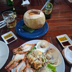 Die letzten beiden Tage haben wir dann doch nochmal Rad gegen Roller getauscht, waren schön Meeresfrüchte essen, haben ein letztes Mal im Meer geplanscht, waren mitm Kayak paddeln und haben viel gequatscht. War ein toller Abschluss bevor es zurück in die City geht. Das warme Meer werden wir vermissen....🐟🌊🌴🥥Read more