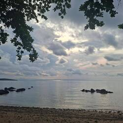 Wir haben wieder eine tolle Bleibe direkt am Wasser. Der Strand ist hier nicht ganz so paradiesisch, dafür ist hier aber auch komplett nichts los, das Wasser wieder wie Badewanne und bis auf paar Motorengeräusche der Boote ab und an, hört man hier echt die Flöhe husten. Herrlich.