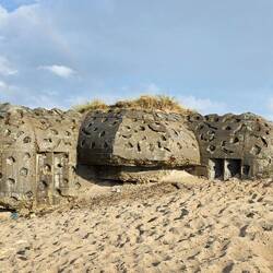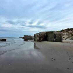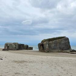 Der Strand mit seinen Bunkern ist schon sehr schön aber die Wellenreiter zu beobachten, ist noch viel schöner.