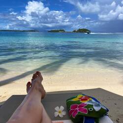 Nach ein paar Erledigungen in Vaitape habe ich den Tag am Strand verbracht. Die Liege ganz vorn am Wasser war noch frei.