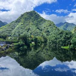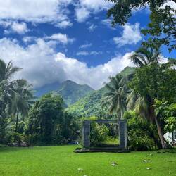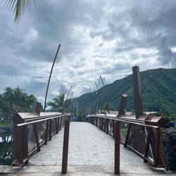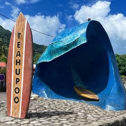In Teahupo‘o haben im letzten Jahr die Surfwettkämpfe währen der Olympiade stattgefunden. Unmittelbar hinter dem Riff fällt der Meeresboden steil ab. In der Saison entstehen so bis zu 10m hohe Wellen. Auf den Fotos kommt‘s nicht so rüber, aber ich fand’s auch heute beeindruckend. Kleine Boote fahren die Touristen hinter die Wellen. Sie waren nicht mehr zu sehen, so hoch waren die Wellen. Ich habe das Angebot dankend abgelehnt.