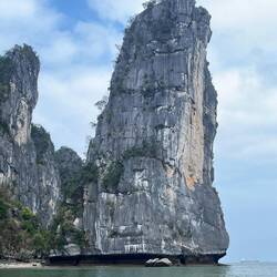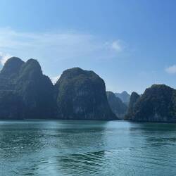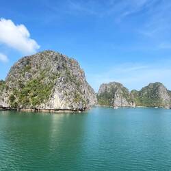 Caroline aus Polen und ich haben ein 2er Kajak bestiegen und sind damit knapp 40 Minuten durch die Lan Ha Bay gefahren.