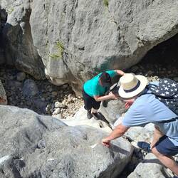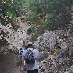 In einer schattigen Stelle der Schlucht legten wir eine kurze Pause ein, bevor wir uns auf den Rückweg machten. Wieder am Ausgangspunkt angekommen, wurden wir dort bereits von Maria erwartet. Sie hatte für uns ein liebevoll vorbereitetes kleines Picknick aufgebaut – mit frischem Brot, Käse, Oliven und Tomaten. Besonders dankbar waren wir für das kalte Wasser, das nach der Wanderung eine willkommene Erfrischung war. Als besondere Geste gab es zum Abschluss noch ein Gläschen Raki, das die gesellige Runde abrundete.Read more