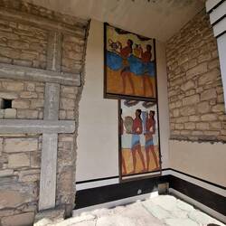 Einige Bereiche wurden von Archäologen wie Sir Arthur Evans teilweise rekonstruiert. So konnten wir farbenfrohe Säulen und Fresken sehen – darunter das berühmte Stiersprung-Fresko und die „Ladies in Blue“. Diese Darstellungen gaben uns einen lebendigen Eindruck vom damaligen Leben, der Kleidung und den Ritualen der Minoer.