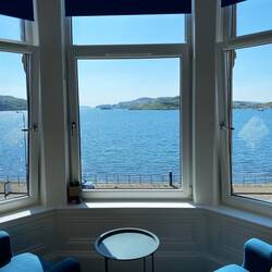 3 Stunden Zug Direktfahrt nach Oban (33 pfund) schön in grüne Landschaften glotzen, wunderbar. Unser Zimmer mit Aussicht ist toll. Oban niedlich. Wir essen Fish and chips und Mussels in cream direktBaca lagi