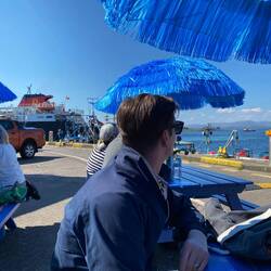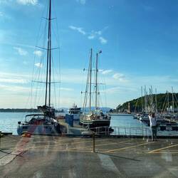 Königswetter. Königliche Yacht. So dachte ich mir für den letzten Tag. Eric ist nicht überzeugt aber muss ja. Wir fahren mit der langsamsten Tram der Welt. Eric möchte nicht in die AusstellungBaca lagi