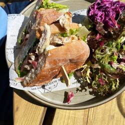 Schlaf mittel, Frühstück sehr gut. Aber gleich hop hop auf den Rundweg durch Schafe und Lämmchen. Ich ess nie wieder Lamm 🐑 echt. Das Städtchen ist wirklich nett das Wetter perfekt. Kurze PauseBaca lagi
