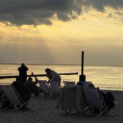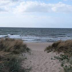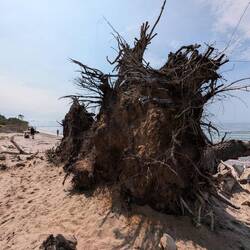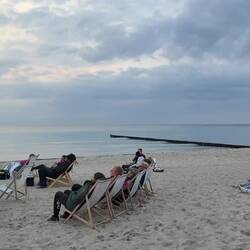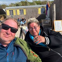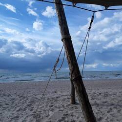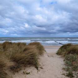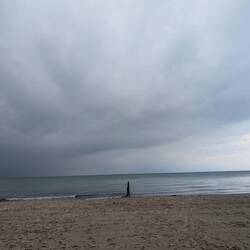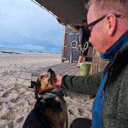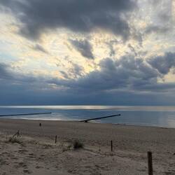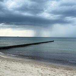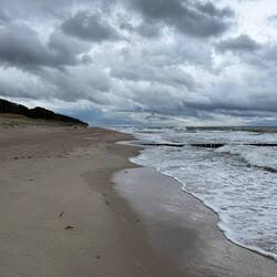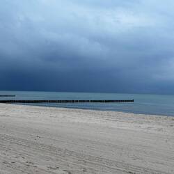 Nach dem Frühstück in Knausi sind wir am Strand Richtung Graal Müritz. Angekündigt war Dauerregen mit Sturm. Bis zu unserem Imbiss haben wir es geschafft nicht nass zu werden. Nachdem der RegenLæs mere