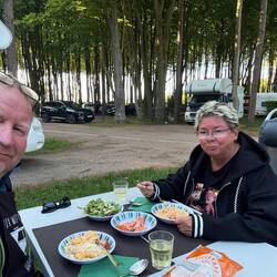 Heute war großer Abreisetag. Früh hat es zu regnen angefangen. Nach Ende des Regens zum Mittag sind wir zu unserem Imbiss gegangen, weiter nach Graal Müritz zum Eis essen. Zurück mit Pause amLæs mere