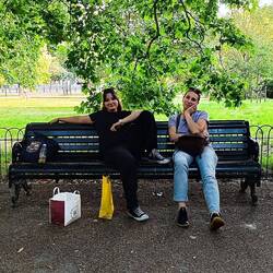 Nach mittlerweile 20.000 Schritten haben wir uns mit Essen in den Hyde Park gesetzt und entspannen nun ein bisschen. Die Füße werden langsam müde für heute, aber das Wetter bleibt sonnig und angenehm.