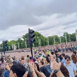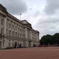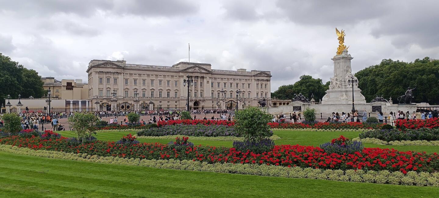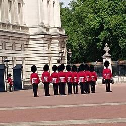 Nachdem es heute morgen mit dem Natural History Museum nicht geklappt hatte, ging es jetzt aber in die Staatsräume des Buckingham Palace. Zuerst mussten wir aber durch eine Kontrolle, ähnlich wie amLæs mere