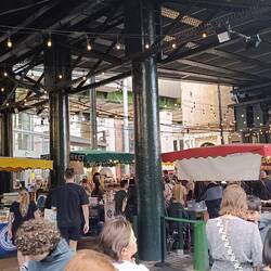 Ein "Must See" in London ist auf jeden Fall der Borough Markt, unweit von der Tower Bridge. Hier tummelt es wie im Bienenstock. Eine Vielzahl an Speisen lockt viele Besucher, sodass ein DurchkommenLæs mere