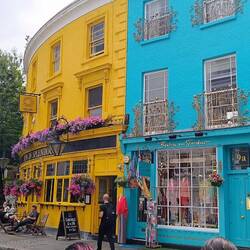 Notting Hill ist ein lebhaftes und farbenfrohes Viertel. In der Portobello Road ist nicht nur ein geschäftiger Markt für Antiquitäten und Vintage-Bekleidung, sondern es gibt auch zahlreiche CafésLæs mere