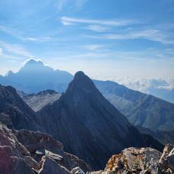 Magnifique ascension vers le pain de sucre. Le sommet est étroit, je suis bien accroché aux rochers une fois arrivée...