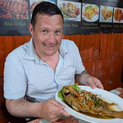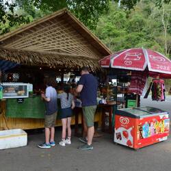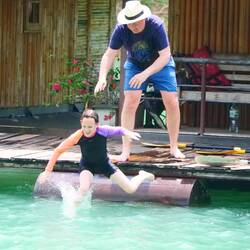 After seeing the elephants we stopped here for more delicious Thai food, to feed the giant fish and for a cool down in the lake!