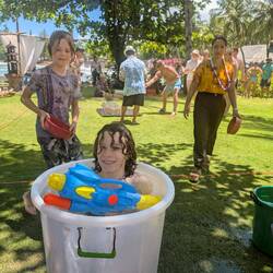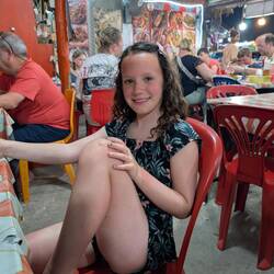 Today is Song Kran, the celebration of Thai new year. We had been told to expect water fights... Arabella was prepared before breakfast!