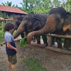 These 3 female elephants have all been rescued. 2 from the circus in Phuket and 1 from logging. One has only been at the centre for a month, another for 10 years. Even in the short time we spent withRead more