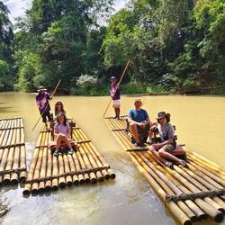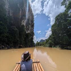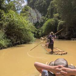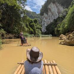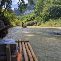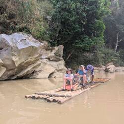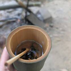 Unexpectedly, whilst rafting we stopped under a huge cliff face where a fire was heating bamboo tubes of water and we were given tea and coffee in bamboo cups!