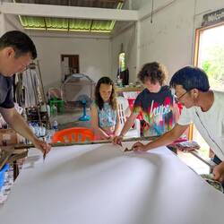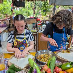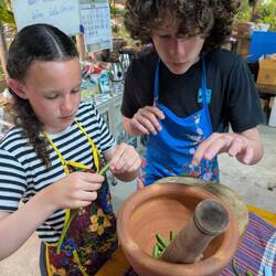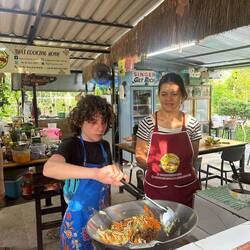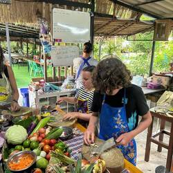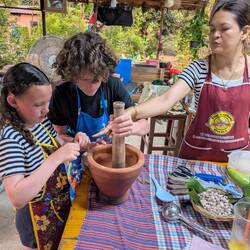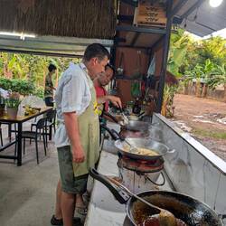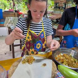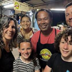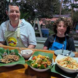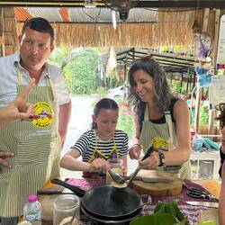 We arrived at Rin's home where we were greeted by his wife, sister and son (and the family dogs!) the whole family helped us to prepare and cook Thai food including spring rolls, papaya salad, padRead more