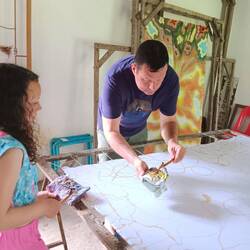 This morning we escaped the rain to spend an amazing 2 hours with Art.he is a batik artist that lives very frugally in a 1 roomed house/studio. He provides the opportunity to create a bespoke batikRead more