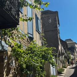 Drove to Najac today. I'm glad we didn't cycle as it was 22 miles and lots of hills, up and down. Najac is another beautiful village with the claim of being the most beautiful town in France. It certainly was beautiful and medieval, with steep streets. It's very quiet, but the season doesn't start till july. It's also a bastide town with a fortified castle, which we visited. We had a drink at a cafe come bookshop run by an English lady who had a dream to run a tea shop in france, she's done this for the past 3 years. I had a scone with clotted cream and jam 😋.Leer más