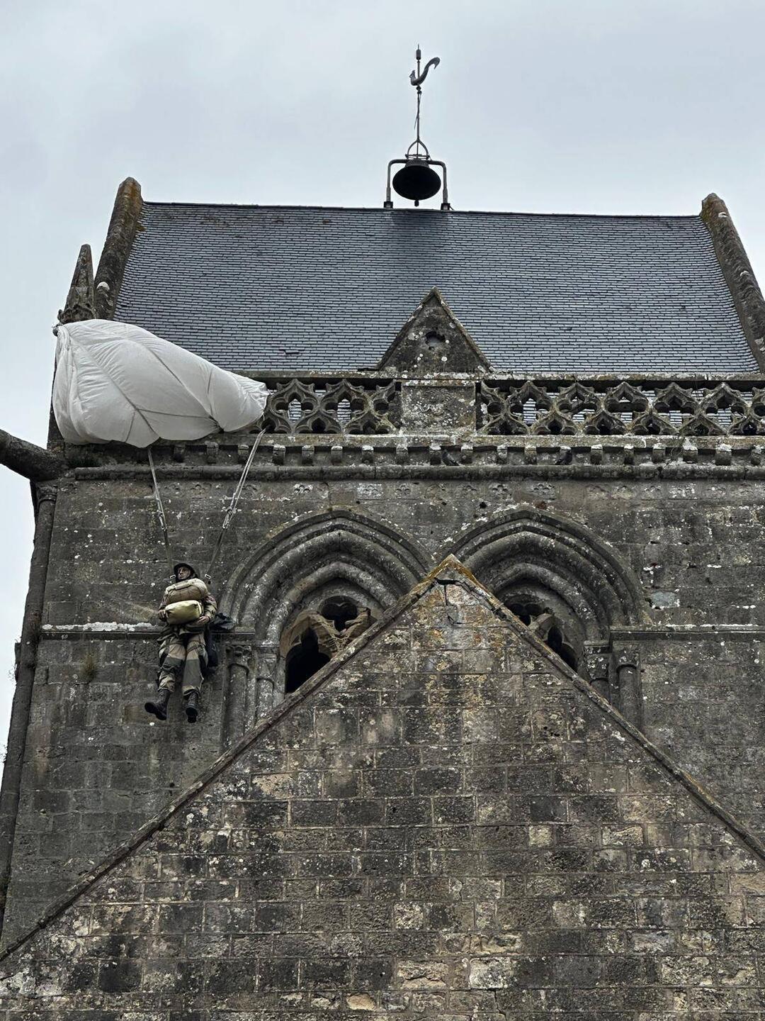 Travelled to Saint Marie eglise in drizzle yesterday. Stopped twice and had our last french baguette & French pastries for now. The town, of course, is near to the Normandy beaches and full of museums and exhibitions. The Americans parachuted in, and one poor chap got caught on the church steeple. The germans were going to shoot him, but then realised he was on sacred ground and was saved.